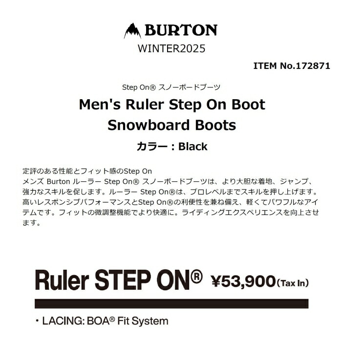 | モデル名 | BURTON Men's Ruler Step On Boot Snowboard Boots 定価:49000+(税) |