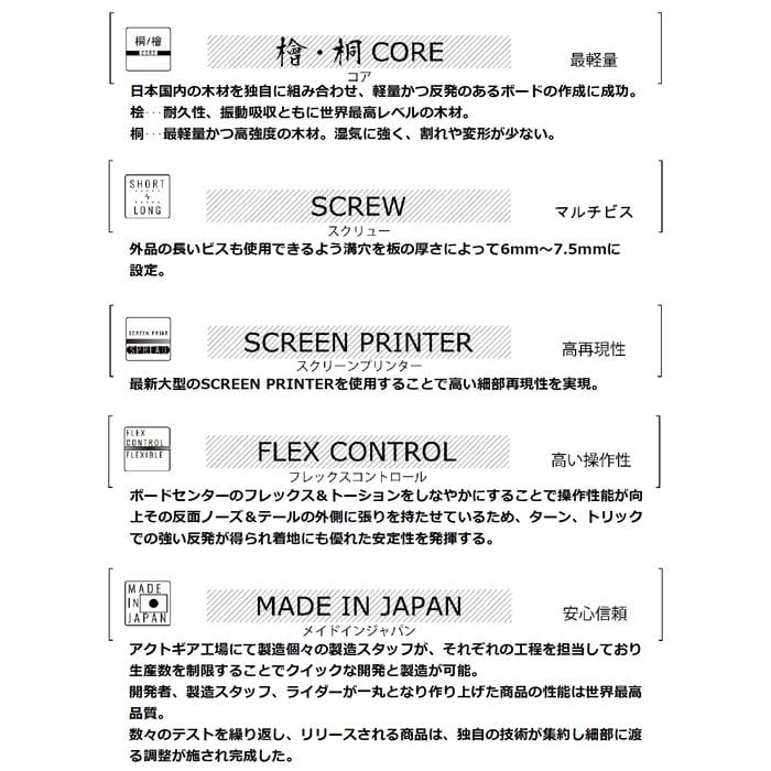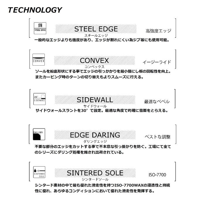 | 選べる 特典 | ・プレチューン/WAX FUTUREサービス ・オリジナルニットソールカバー ・デッキシート ・ショートビス(15.5mm) ■プレチューンとは? NEW BOARDのエッジ角の変更、エッジの立て直し調整、ベースWAXを行い、BOARDの性能を100%引き出すためのチューニングです |